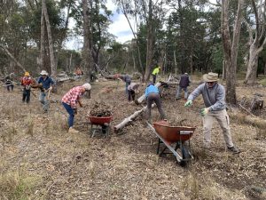 The 22 November working bee was coordinated by the Mitchell Alliance for Tracks and Trails (MATT) and led by the Friends of the Bendigo–Kilmore Rail Trail. Volunteers included local residents and members of BEAM Mitchell Environment Group, Wallan Environment Group, Mitchell Bicycle Users Group, Mitchell Bushwalking Group, the Australian Plant Society, and Friends of the Bendigo–Kilmore Rail Trail.