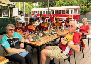After packing up each of the Water Stations, it was time for the volunteers to relax a little with a coffee plus scones, jam and cream at the Tram Café. Like to join this active and social community group, participating in a bit of volunteering as well as regular social cycling activities? Its really easy, just by completing the on-line membership application. http://bendigokilmorerailtrail.com/members/application/